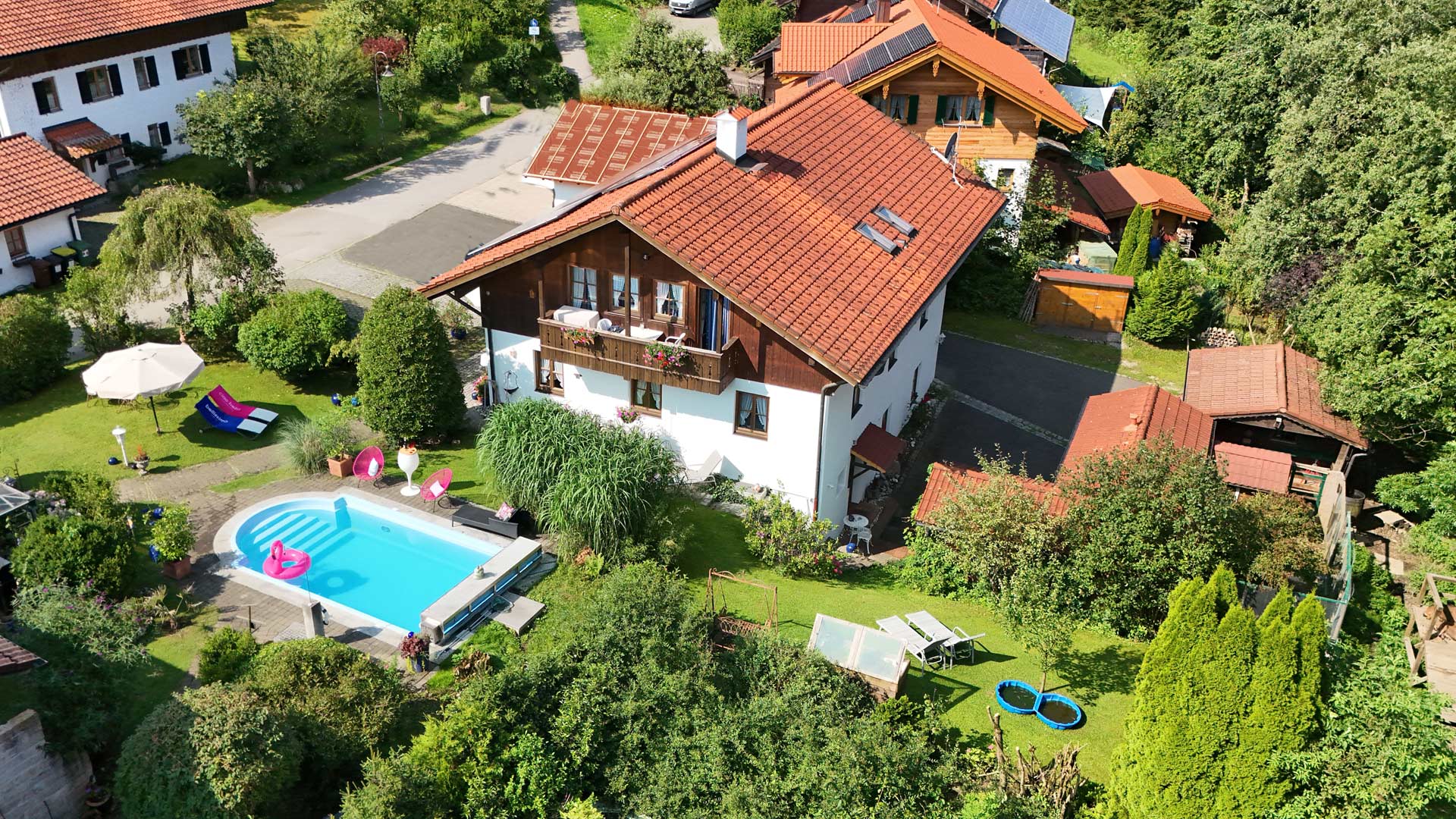 Wir heizen mit modernster Technik – Pellets- und Solarheizungen. Eigene Stromerzeugung durch PV-Anlage mit eigener E-Tankstelle für Elektroautos. Haustiere erlaubt.